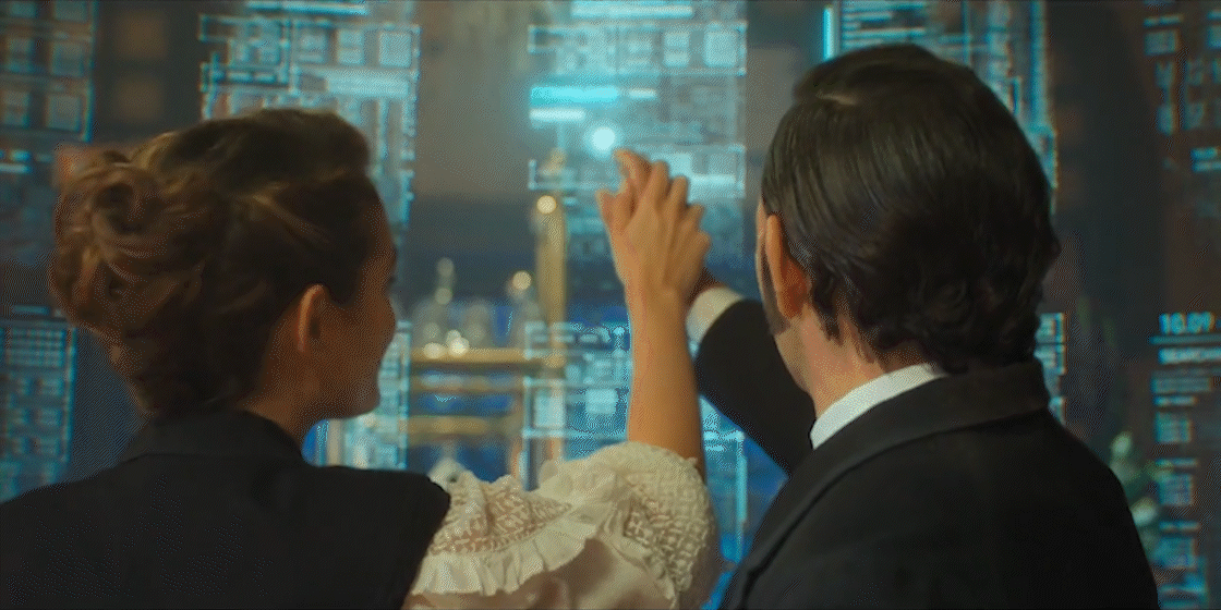 There are a number of different holographic interfaces in the show but this was one of my favourites to work on. The key here was to use 2D elements in After Effects to build a sense of depth in the graphics, making them feel like they were really there in the scene.